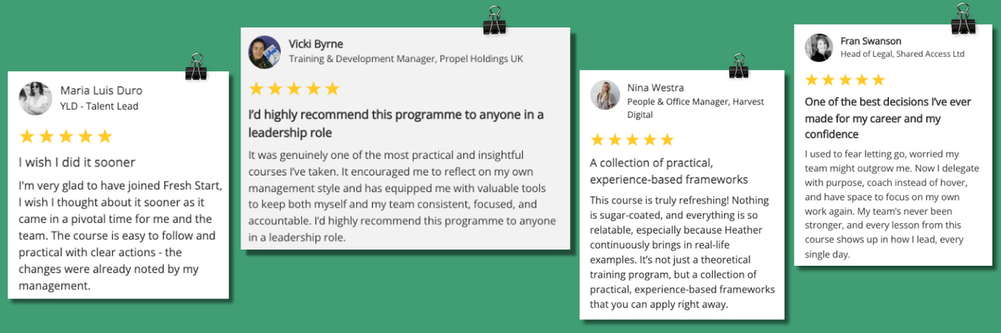 Fresh Start is the proven 6-week bootcamp getting managers taking control, earning respect and driving results, but don’t just take my word for it…